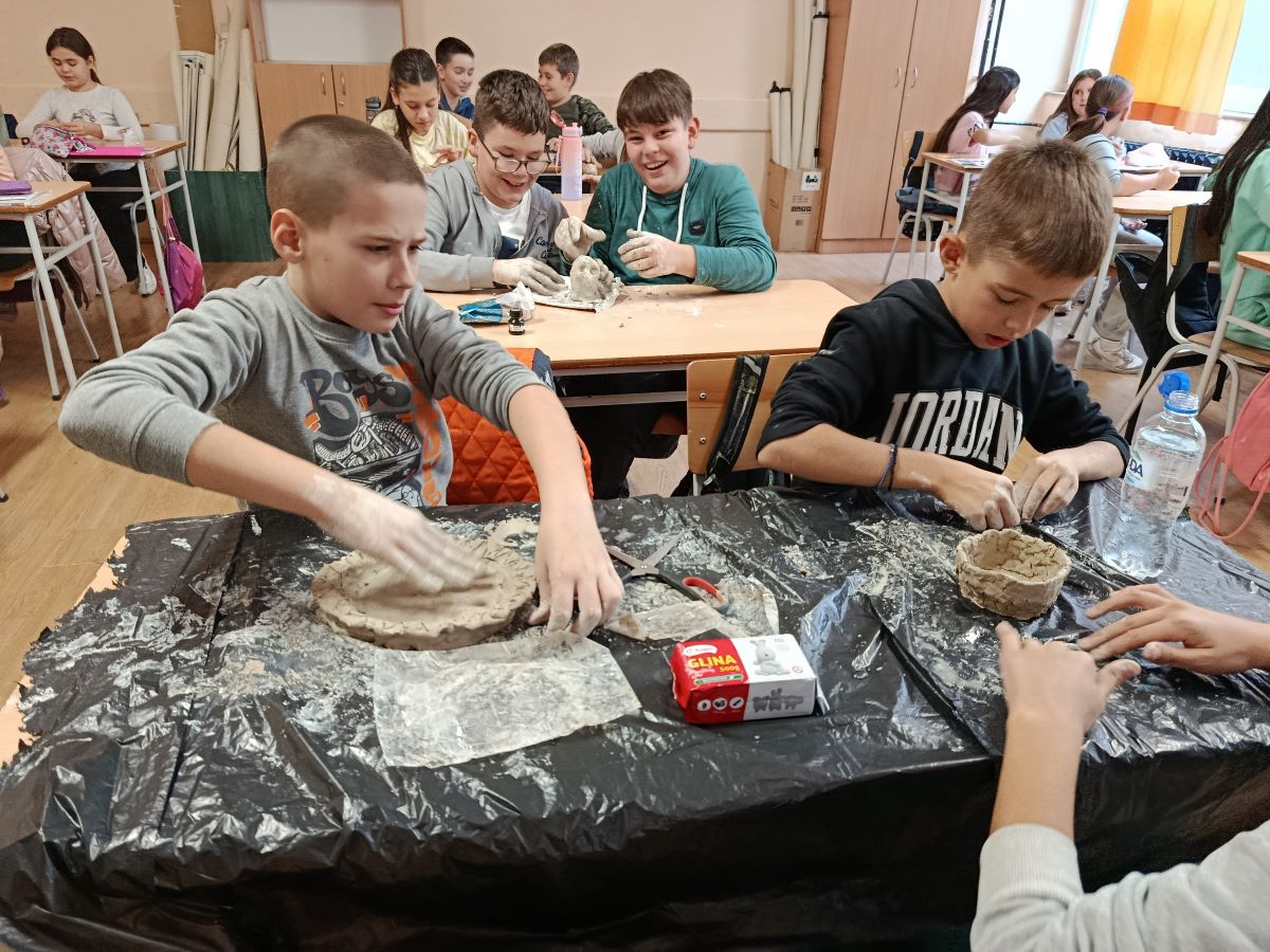 Ученици петог разреда су у периоду од 7. до 10. октобра 2025. године, уз подршку наставнице Зорице Јовић, проучавали најдужи период људске прошлости – праисторију. Како би боље разумели живот у том периоду, ученици су се упустили у пројекат израде првих људских станишта од материјала који су користиле праисторијске заједнице. Поступили су према историјским изворима и, кроз креативан рад, показали велики ентузијазам. Њихови напори су награђени одличним оценама.