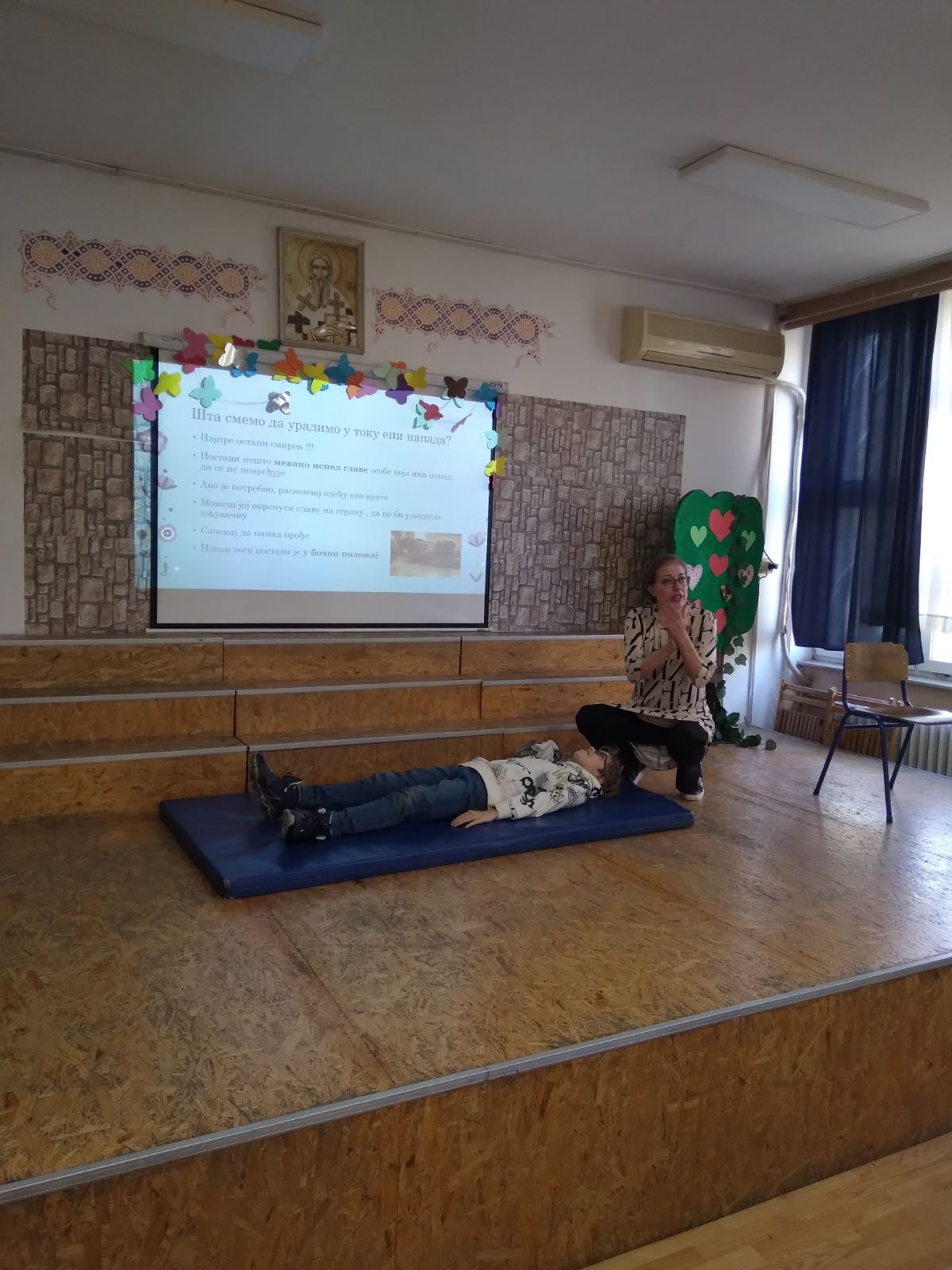 Др Михајловски је на јасан, занимљив и приступачан начин ученицима објаснила како могу да пруже основну прву помоћ у различитим ситуацијама. Ученици су са великим интересовањем пратили излагање, активно учествовали у демонстрацијама и постављали бројна питања.