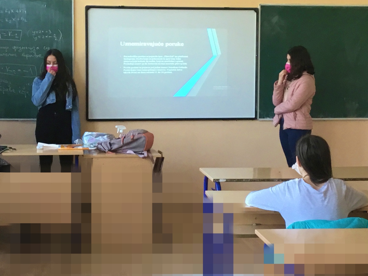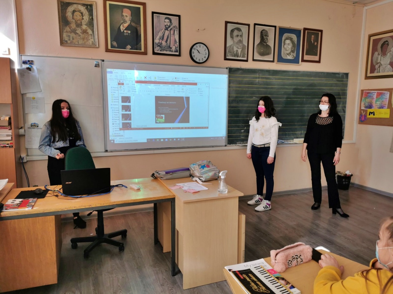 Ученице 6/3 Тамара Вучећевић и Наталија Аничић посебно су се ангажовале и осмислиле презентацију, а затим и одржале предавање својим вршњацима у 5/2, 6/4, 8/1 и 6/3 уз присуство одељенских старешина Петром Ивовићем (5/2), Светланом Милентијевић (6/4), Славицом Ћуковић (8/1) и Мирјаном Богићевић (6/3). Њихова презентација је у прилогу.