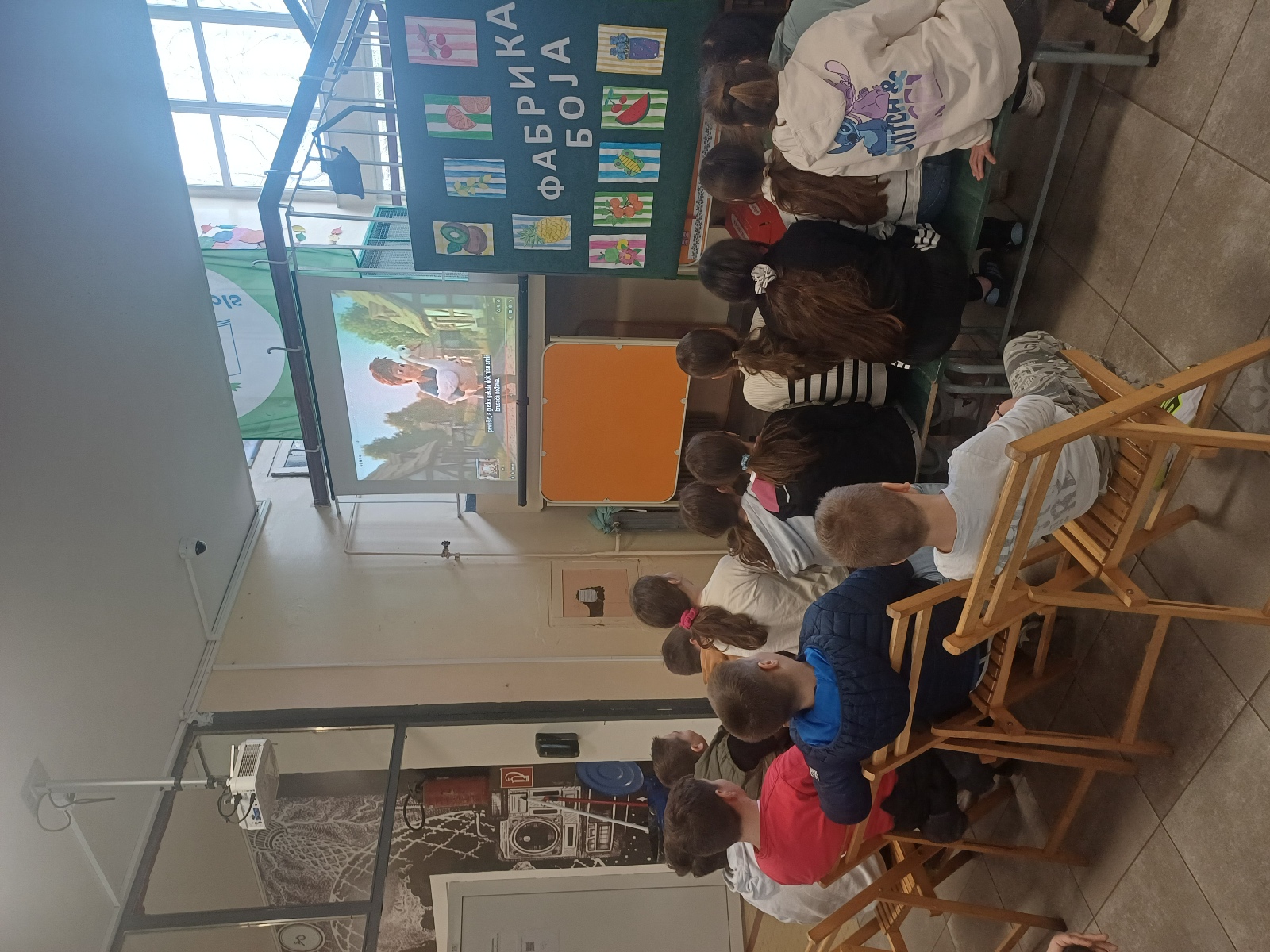У холу школе, ученици су имали прилику да погледају и послушају видео-записе и песме посвећене срећи.