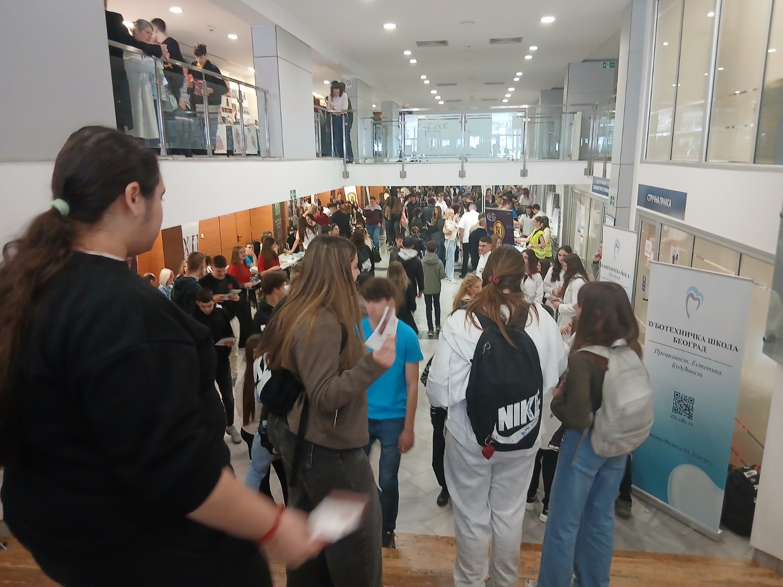 Група ученика одељења 8/1, 8/2 и 8/3 је 9. априла 2026. године, у пратњи наставница географије Снежане Трнавац и Даниеле Димитријевић, посетила Сајам образовања, који је одржан у згради Београдске академије пословних и уметничких студија, у организацији Општине Звездара.